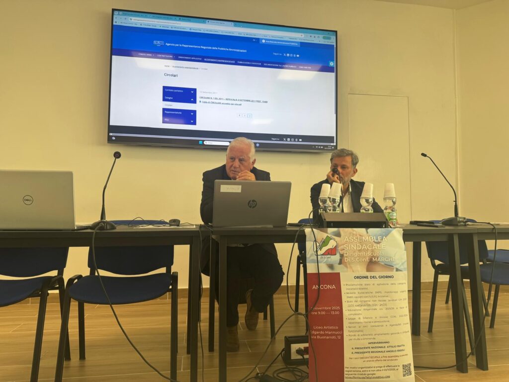 Il Presidente nazionale Attilio Fratta, accanto al Presidente regionale Marche Angelo Frisoli, ha ribadito la necessità di azioni sempre più concrete al fine di conseguire gli obiettivi di miglioramento delle condizioni di lavoro dei dirigenti scolastici e il riconoscimento, anche economico, della loro dignità, proprio nei giorni in cui l’Associazione ha chiesto un urgente incontro al Ministero per fare chiarezza sui provvedimenti per i DS nella Legge di Bilancio 2026, che non prevede adeguati stanziamenti di risorse in vista dell’attesa perequazione stipendiale.