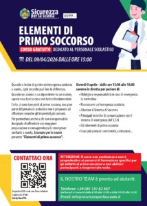 il nostro partner Sicurezza per la Scuola, ente accreditato per la formazione del personale scolastico, mette a disposizione degli Istituti associati DIRIGENTISCUOLA un corso gratuito dedicato al personale scolastico dal titolo “Elementi di Primo Soccorso”.