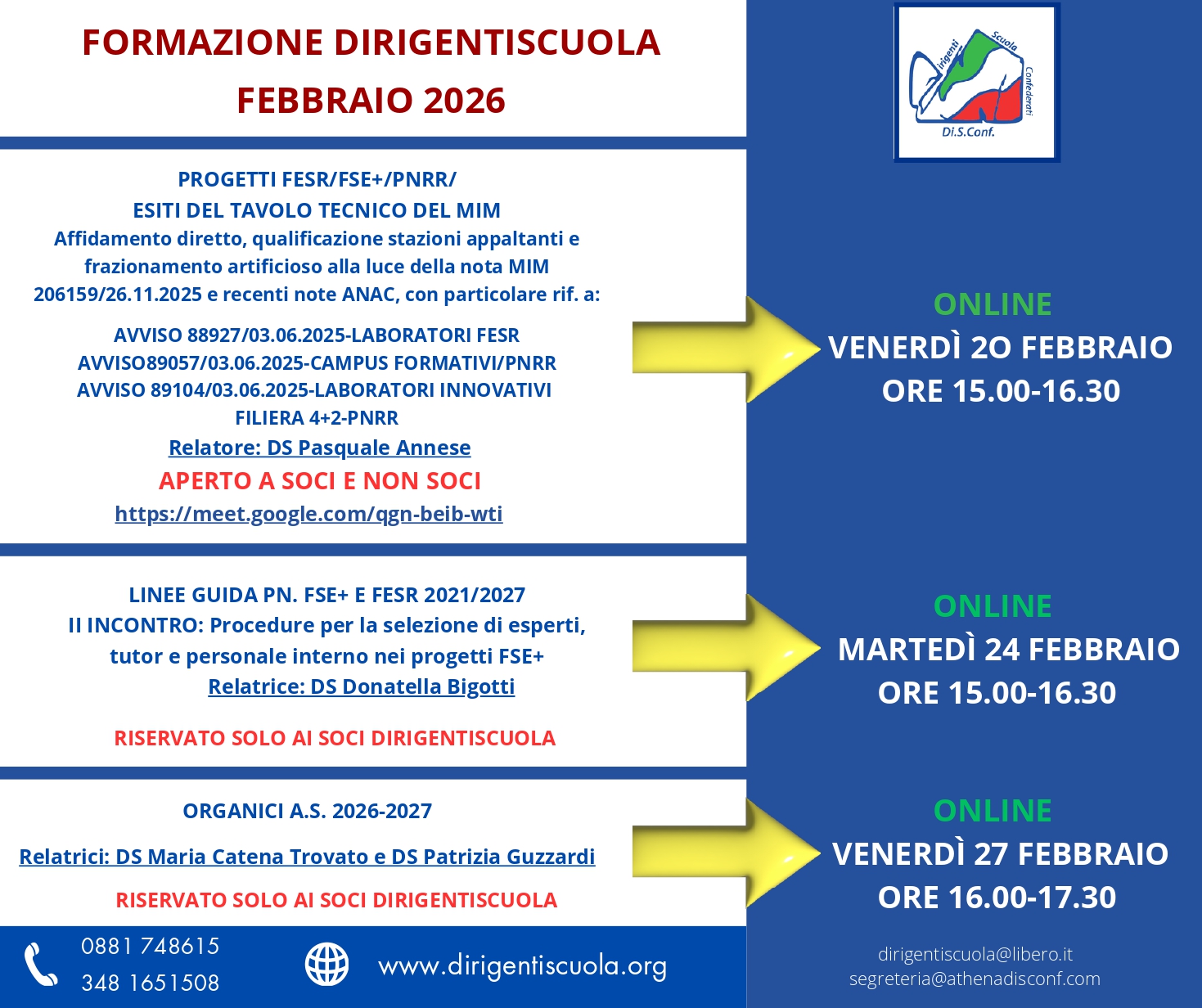 Info e contatti: www.dirigentiscuola.org — dirigentiscuola@libero.it — segreteria@athenadisconf.com.