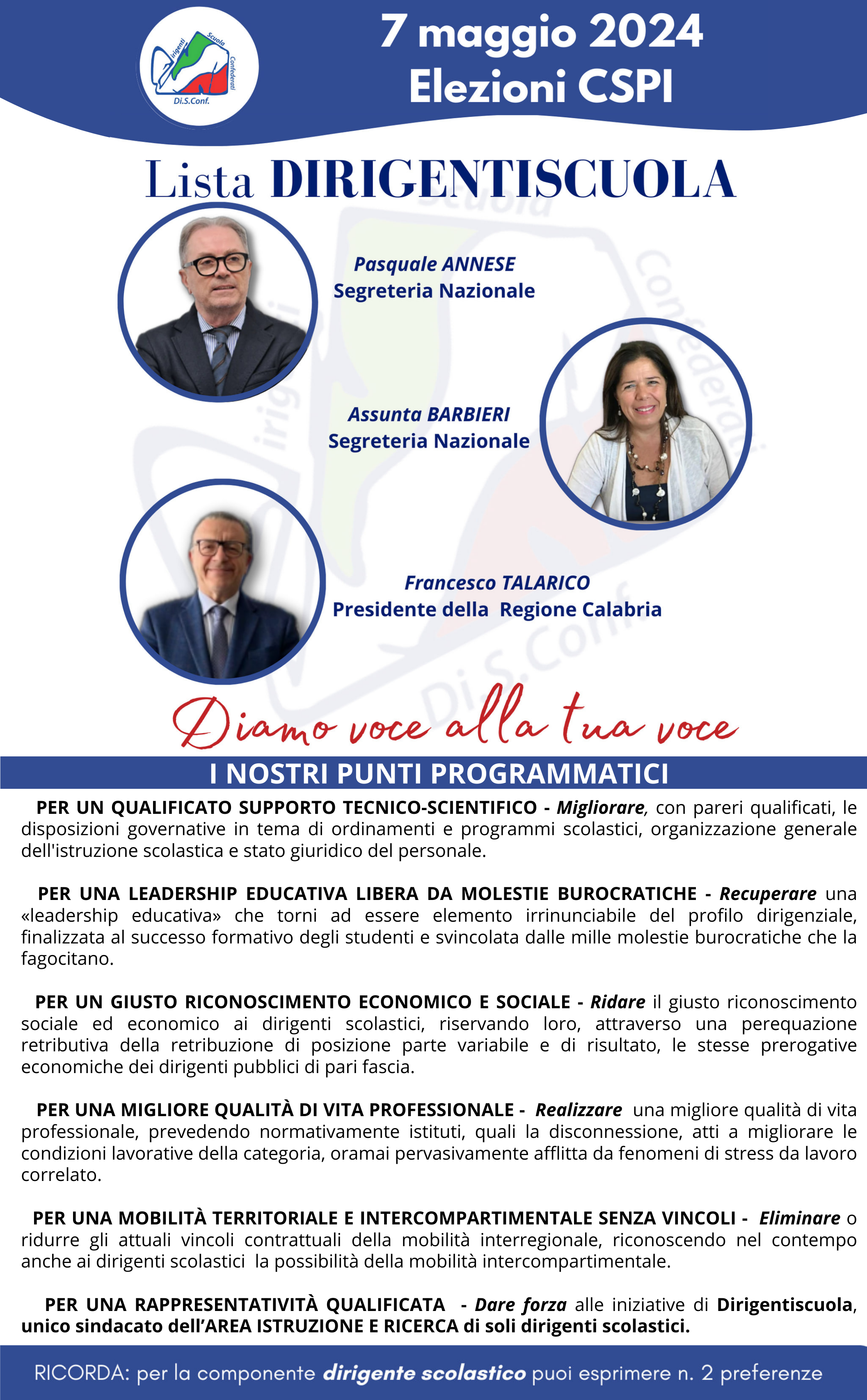 Quindi, il 7 maggio, ovunque tu sia, il tuo voto è importante ed è importante indirizzarlo verso chi da sempre tutela la tua professione, la tua dignità e il tuo benessere: questi siamo noi, siamo dirigenti scolastici che tutelano solo i dirigenti scolastici!