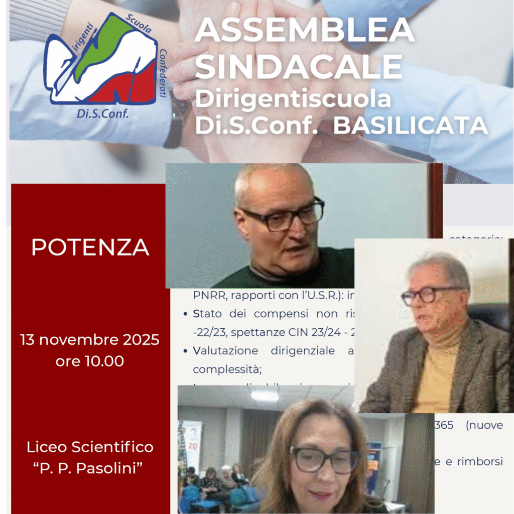 Si è svolta oggi, presso il Liceo “Pasolini” di Potenza, l’assemblea sindacale regionale DIRIGENTISCUOLA della Basilicata, un importante momento di confronto e partecipazione dedicato alla categoria. A fare gli onori di casa è stata la Dirigente scolastica Tiziana Brindisi, che ha accolto i numerosi partecipanti, soci e non soci presenti, in un clima di dialogo e collaborazione.