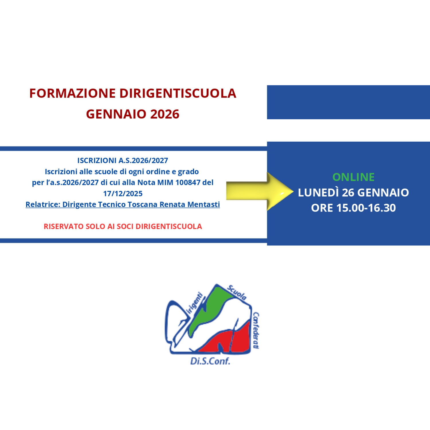 Webinar riservato ai soli soci Dirigentiscuola previsto per oggi, 26 gennaio 2026, ore 15:00.